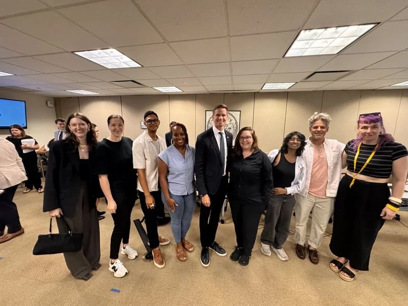 New York Workforce Development Coalition with Council Member Erik Bottcher celebrating the vote to revise the MSMX plan to center garment workers and businesses in the Garment District.